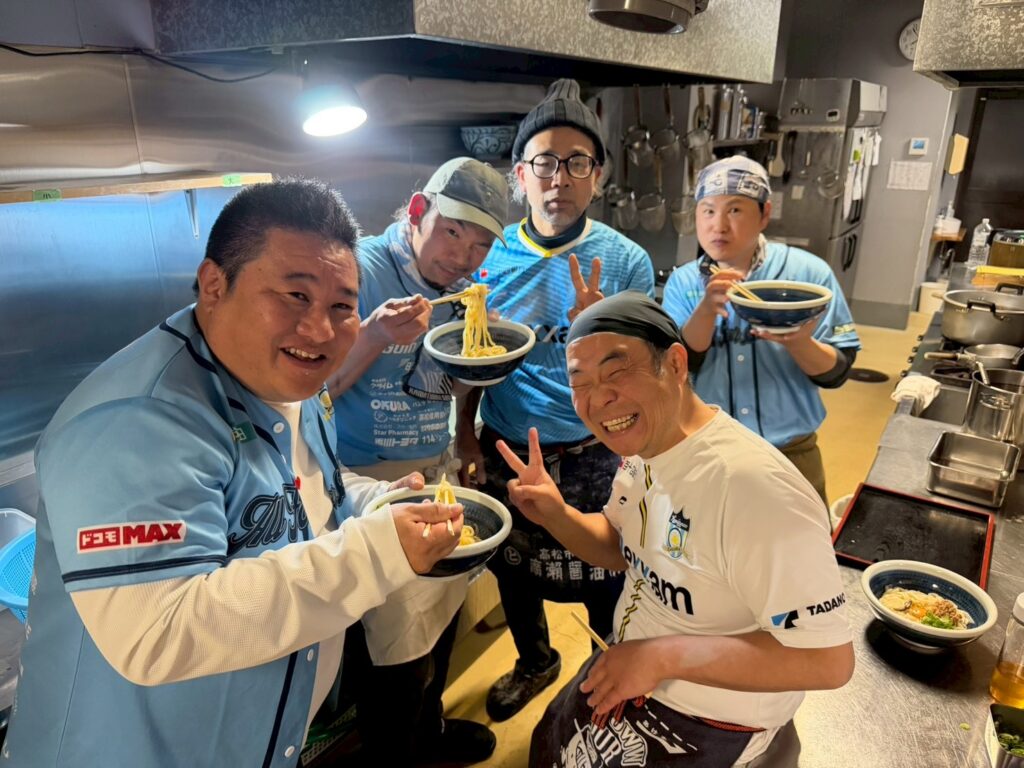 そこでなんとか残留を決定する事ができた記念と来季への決起集会も兼ねて麺匠くすがみさんにおいてサポーターの皆さんと共に残留記念イベントを開催する事となりました(笑)